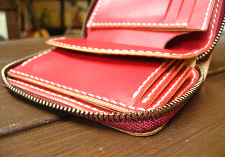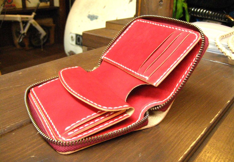 ラウンドファスナー二つ折り財布(手縫い ヌメ革)