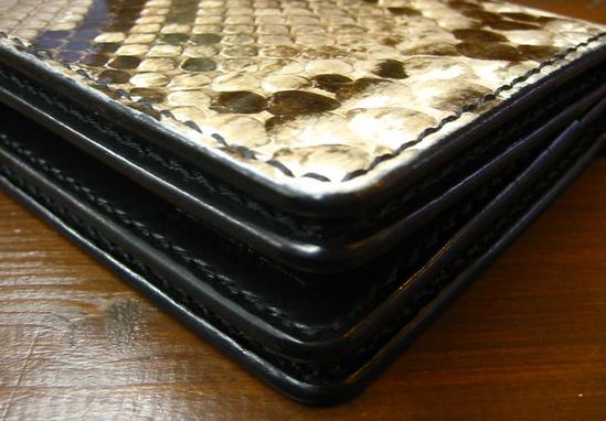 長財布(手縫い パイソン/ヌメ革)