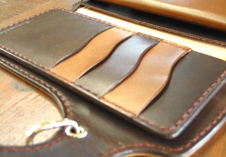 オーダーメイドで製作させて頂いた一点ものの財布です。贈り物として