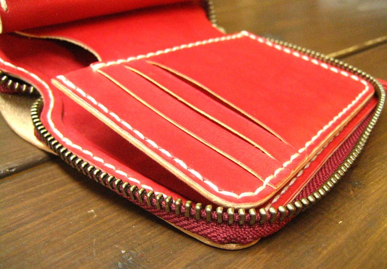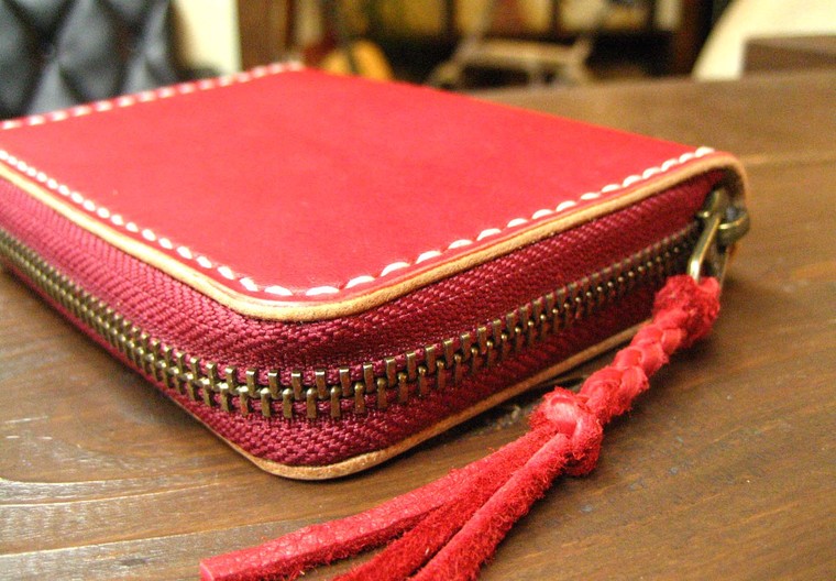 ラウンドファスナー二つ折り財布(手縫い ヌメ革)