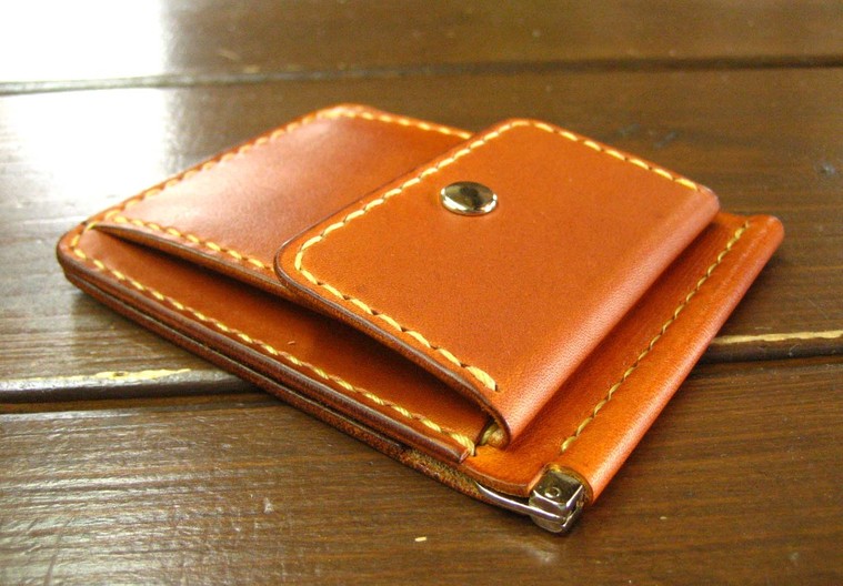 マネークリップ付きコインケース(手縫い ヌメ革)