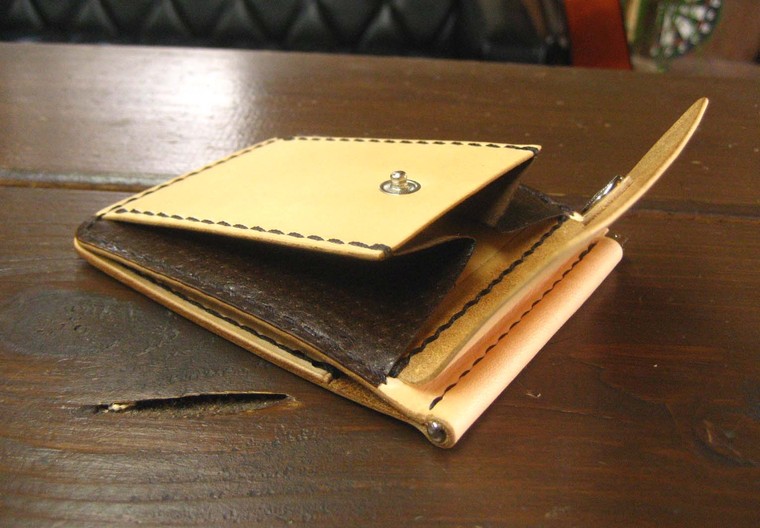マネークリップ付きコインケース(手縫い ヌメ革)