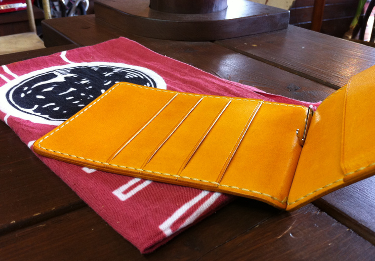マネークリップ付きパスポートケース(手縫い ヌメ革)