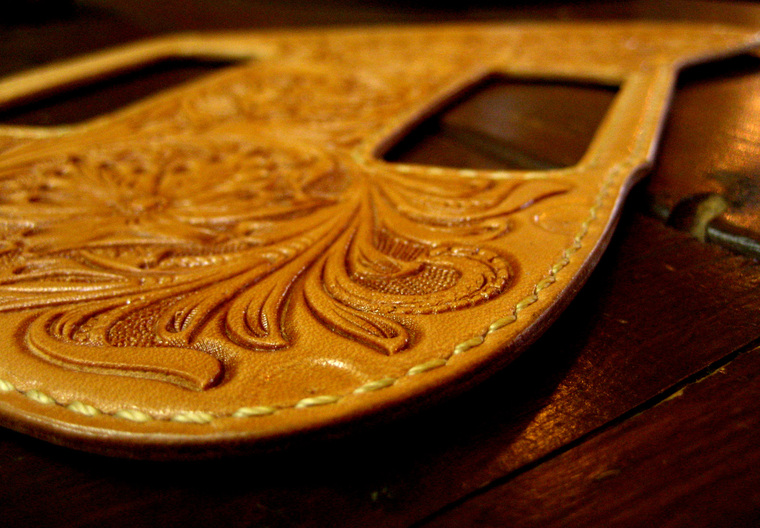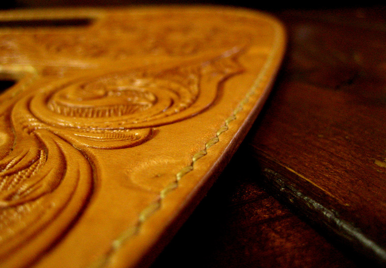 カービングピックガード(手縫い ヌメ革)