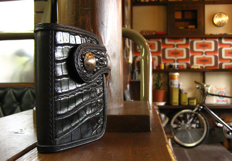 ショートウォレット(手縫い クロコダイル/ヌメ革)