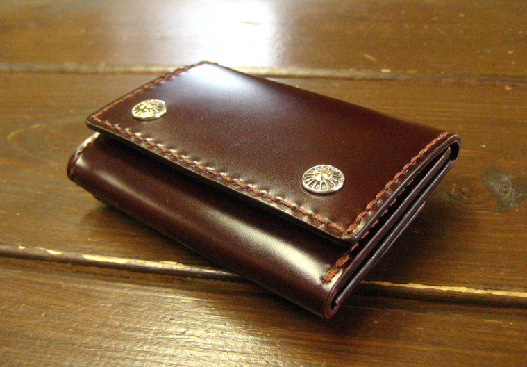 三つ折り財布(手縫い コードバン/ヌメ革)